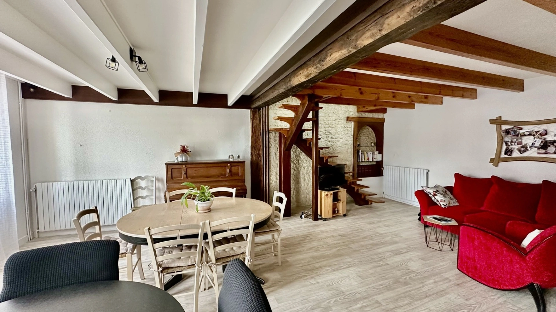 • Une belle pièce de vie lumineuse, alliant le charme de l’ancien et le confort moderne