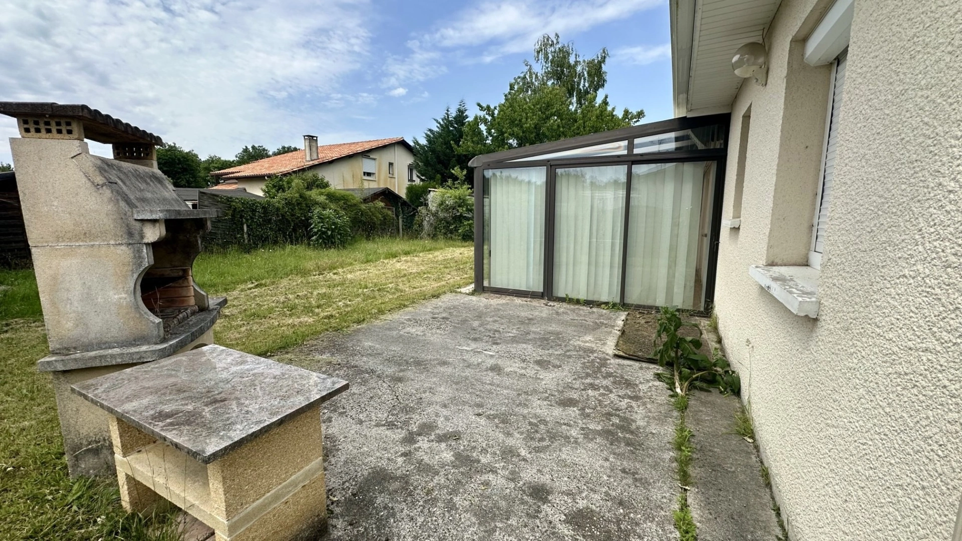 Une véranda complète l’ensemble, offrant un espace de détente supplémentaire avec vue sur le jardin.
